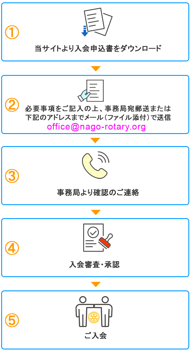 当クラブがEメールまたは電話であなたにご連絡し、推薦人及び会長がクラブの活動や入会について説明します。
